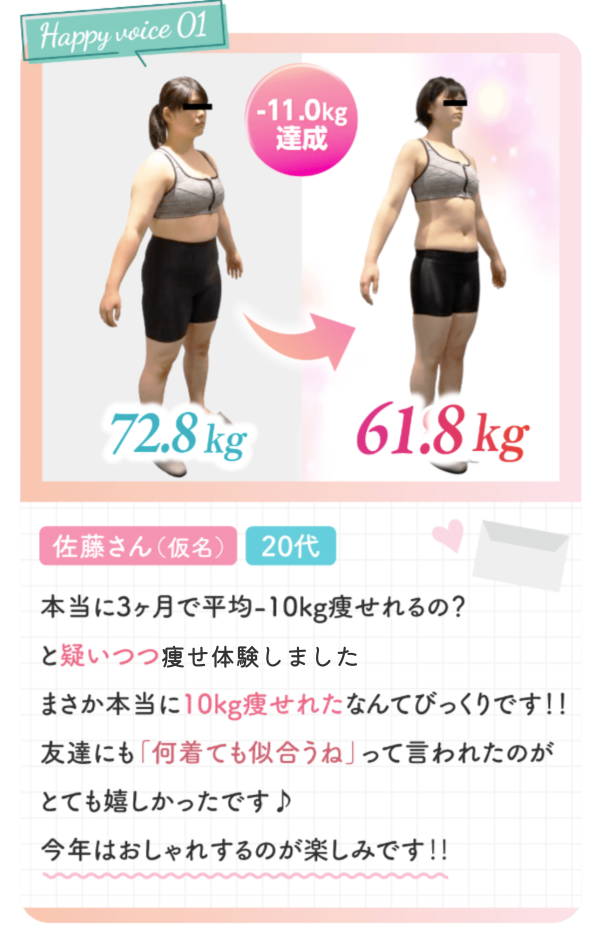 ※3ヶ月医療痩身ボディメイクを契約されたモニター対象の会員の代表的な事例を提示しています。